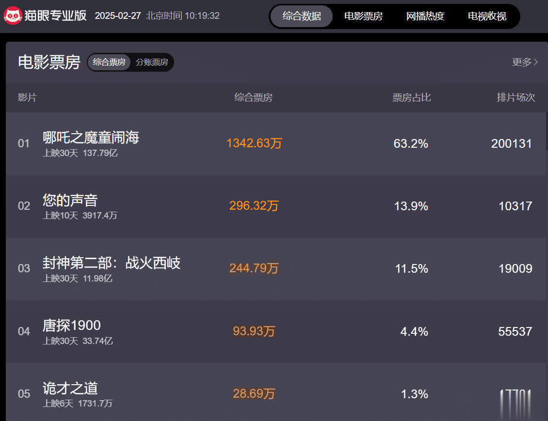 2025年春节档票房亚军《唐探1900》,以目前33亿票房和豆瓣6.4分的争议性评分,成为继《哪吒2》后又一部现象级电影。